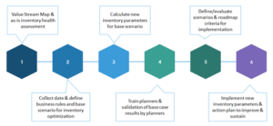 In the first phase of the project, we started with mapping the “as is”-situation, by means of a Value Stream Map and an assessment of the current inventory health by assigning the actual stock to different stock type buckets (safety, cycle, transit, under- and overstock). From these insights, we concluded that safety stock is the main stock driver and that there was potential to improve the quality of the safety stock parameters.