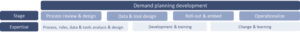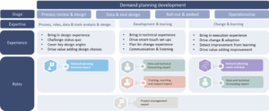 Where expertise as mentioned above already gives guidance, every stage will benefit from specific experience of demand planning set-ups. Let’s connect the overall expertise to specific experience and roles you should imagine throughout the demand planning transformation: